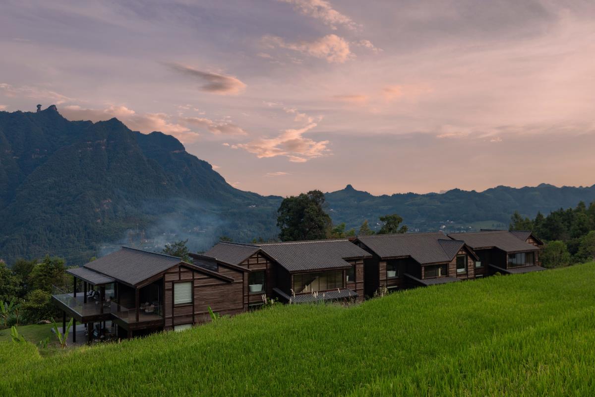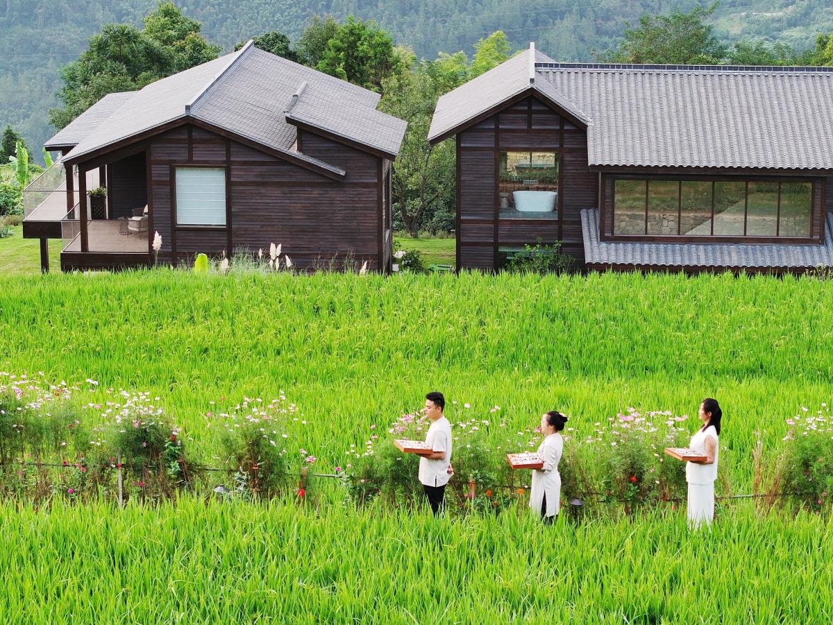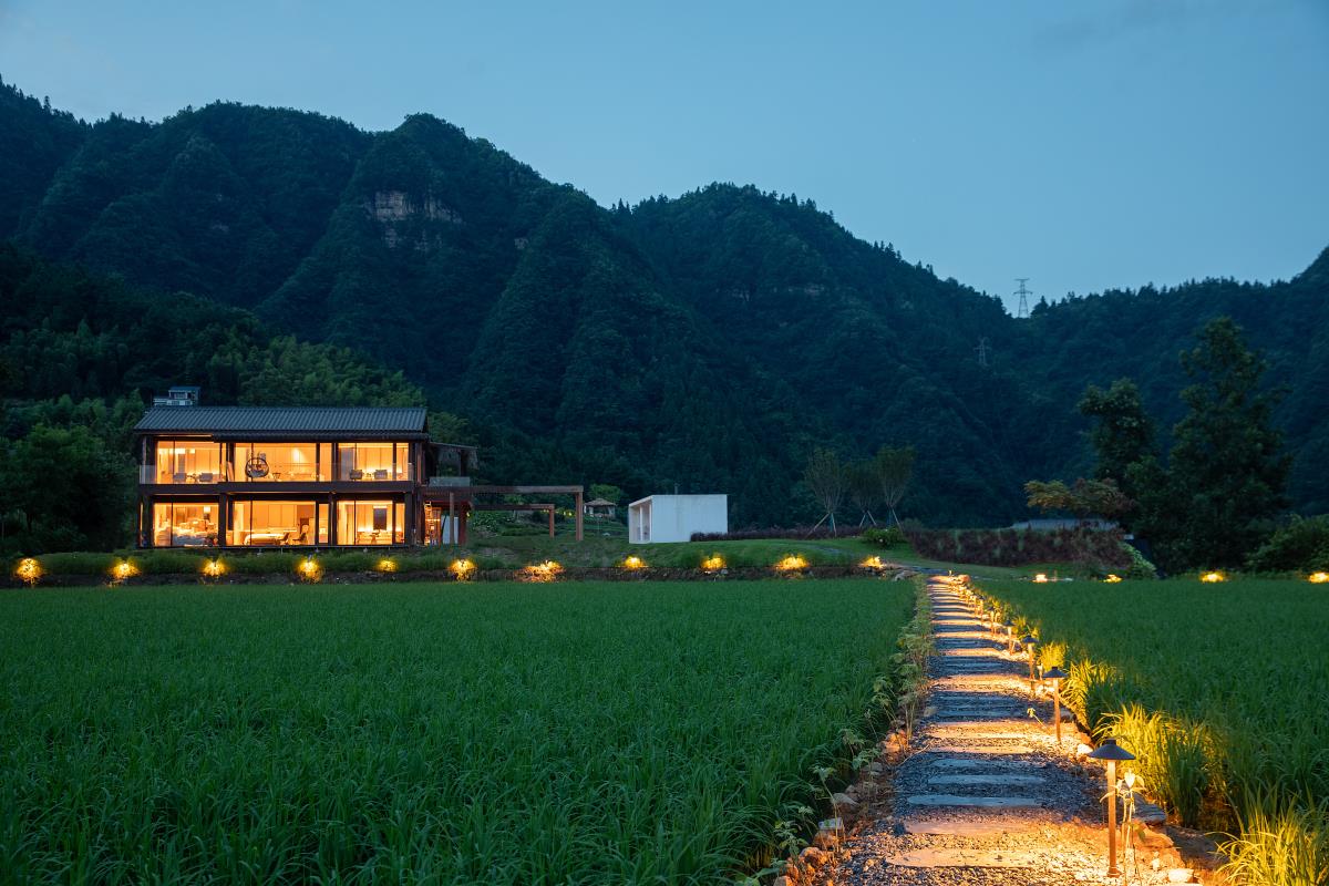 张家界缦心度假民宿于山水之间,既保留了传统吊脚楼的木质结构韵味,又不失现代设计的简约与舒适,营造出一种超脱尘嚣、回归本真的生活氛围。本案设计中秉承“道法自然”的理念,运用消融室内外界限打开空间联系的设计手法,将户外景观最大化引入室内,透过窗棂饱览奇峰秀水层叠梯田,耳边则是远处传来的虫鸣蛙唱,从而打造出一个属于张家界田园风光特色的休闲民宿。