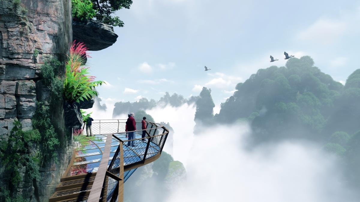 杨家界景区东接张家界,北邻天子山,为国家5A级旅游景区。本项目最主要提质杨家界核心区旅游整体形象,打造集观赏、休闲、浪漫为一体的生态型景观游道,目标是建设一条“自然和谐,浪漫唯美”的“世上最美的山顶爱情之地”。