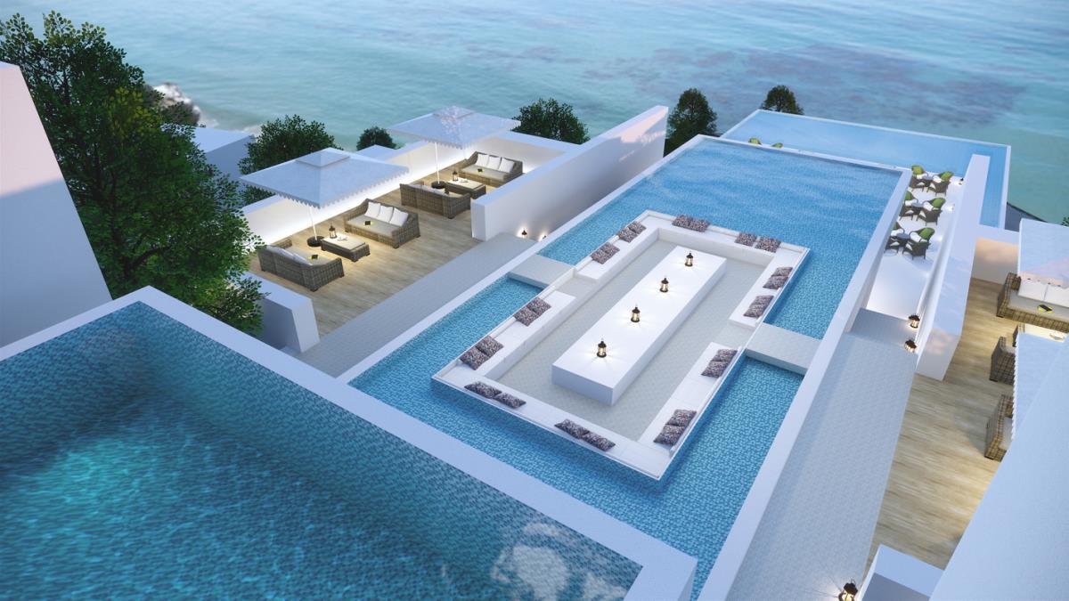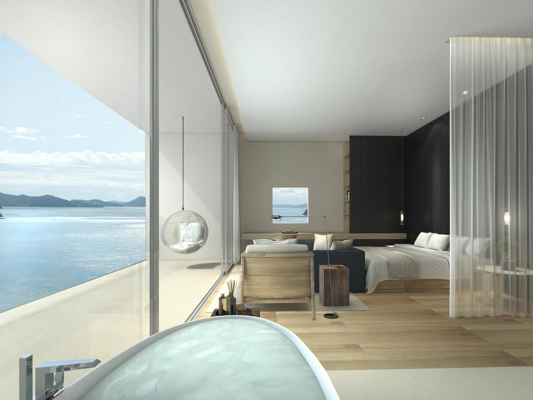 承接三亚海棠湾优越的自然优势,梵丽度假酒店“以柔为美”,墙面采用防水外墙绒面白色涂料,地面铺设白色天然麻石,整体为极简主义风格。超大落地窗户带来的360°视觉体验、悬崖阶梯式的建筑层次感以及融入自然的设计细节将每一个角落都完美呈现,打造出极具未来感的全景观多层无边泳池酒店。