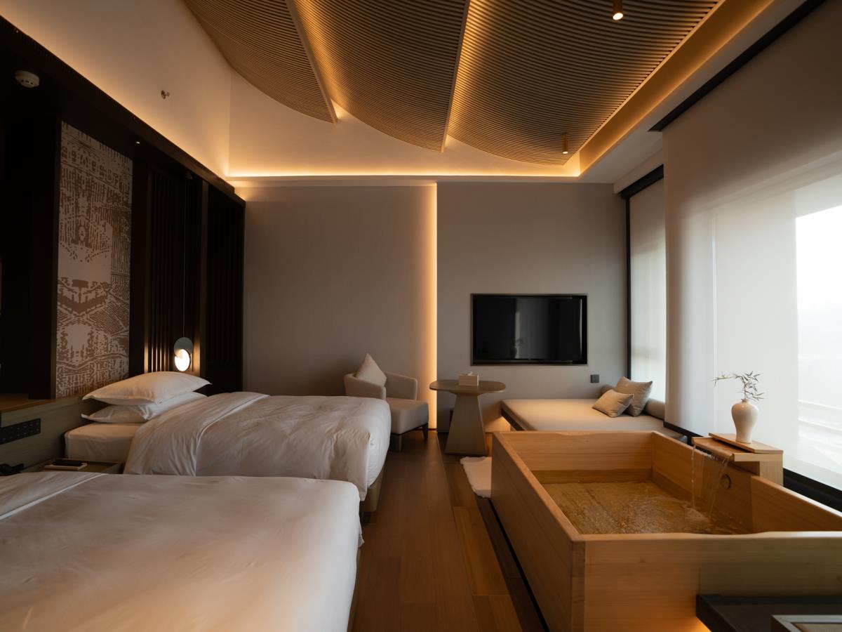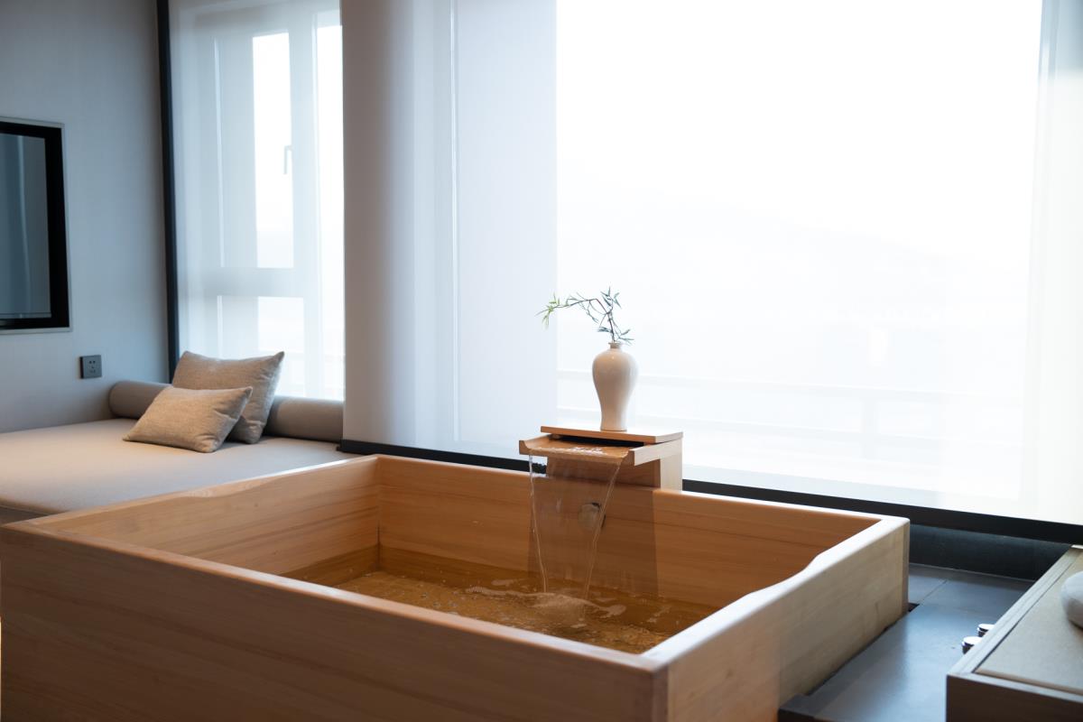 项目位于山西忻州,温泉资源充沛,高度需求孕育符合现代人的度假产品,云沐温泉康养度假中心规模庞大,在闹中取静中给人提供一片心灵栖息之所。设计和风素雅,利用光影科技打造360度泡温泉沉浸式体验,项目包含SPA区、汗蒸区、休闲区、餐饮区等。